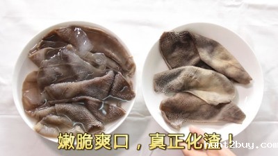 是利用木瓜蛋白酶的特性对毛肚的蛋白质进行分解,使部分氨基酸与氨基酸之间的连接键发生了断裂,破坏它们的分子结构,从而提高毛肚的嫩度,增强毛肚的持水性能,使毛肚更脆。这样方式处理后的毛肚嫩脆适口,咀嚼化渣,感观自然,卫生安全,煮制方便,保持了毛肚的风味和营养,起着嫩化、保水、保鲜、护色之功效,口感上不存在残留碱味,不影响口感体验,且煮了不缩水。